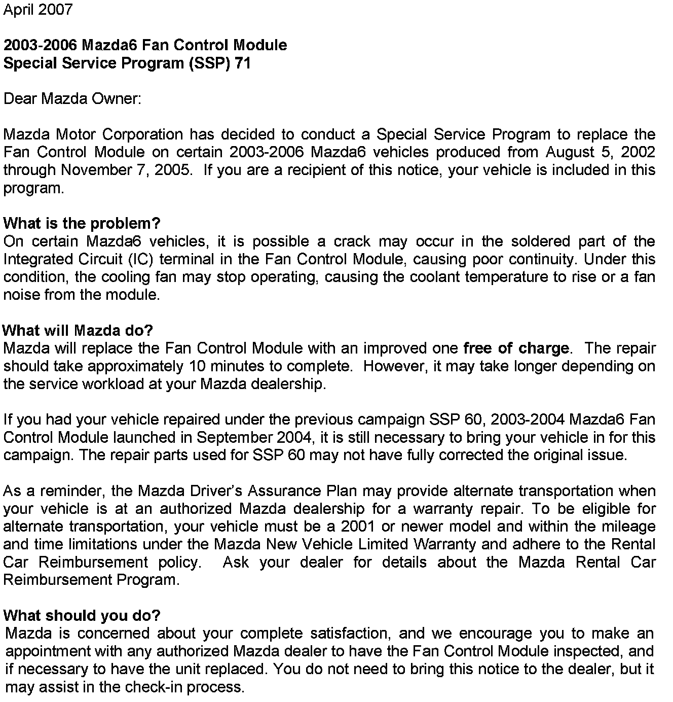 Campaign - Cooling Fan Control Module Replacement