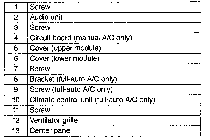 CENTER PANEL MODULE DISASSEMBLY/ASSEMBLY