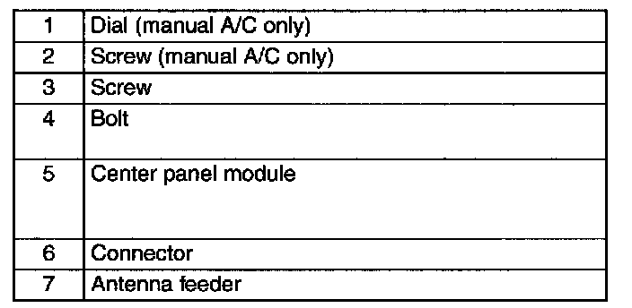 CENTER PANEL MODULE REMOVAL/INSTALLATION1. Disconnect the negative battery cable.