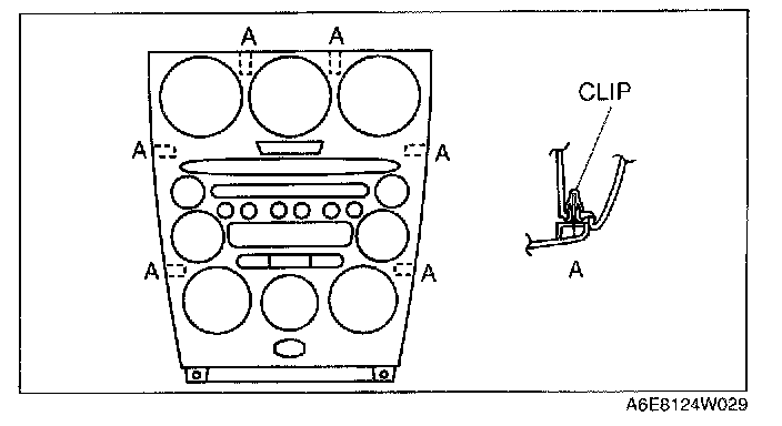 1. Pull the center panel module toward you, then disengage clips A from the dashboard, and remove the center panel module.