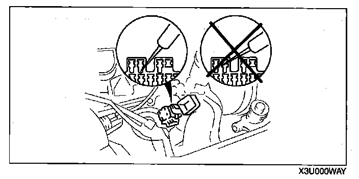 CAUTION: To prevent damage to the terminal, wrap a thin wire around the tester probe before inserting into terminal.