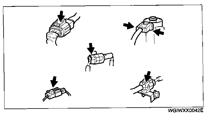 - Inspect the terminals of waterproof connectors from the connector side since they cannot be accessed from the wiring harness side.