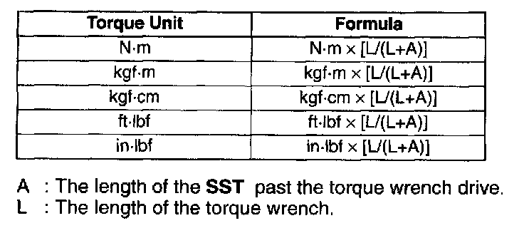 - When using a torque wrench-SST or equivalent combination, the written torque must be recalculated due to the extra length that the SST or equivalent adds to the torque wrench. Recalculate the torque by using the following formulas. Choose the formula that applies to you.