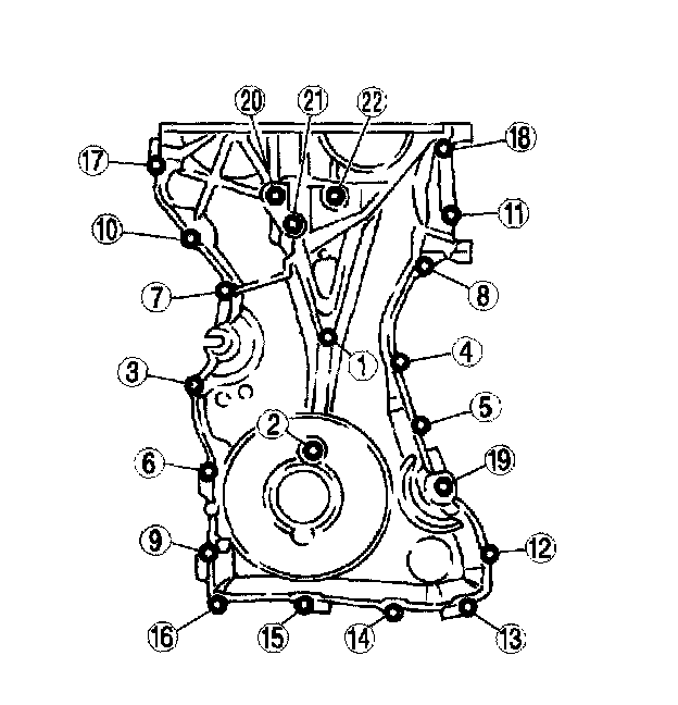 Install the engine front cover bolts in the order as shown