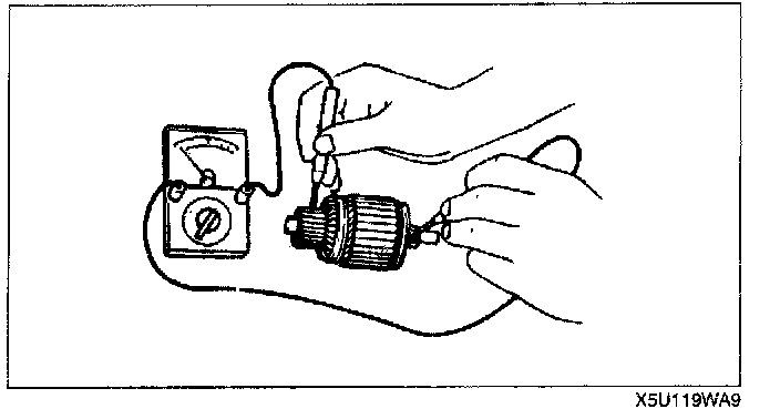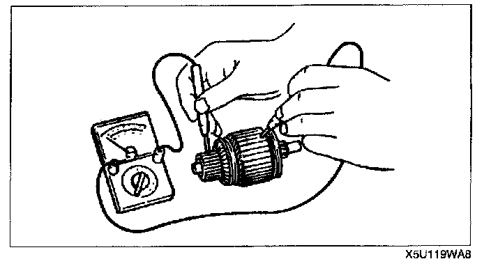 2. Verify that there is no continuity between the commutator and the shaft using an ohmmeter.
