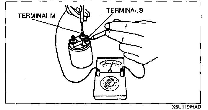 1. Inspect for continuity between terminals S and M using an ohmmeter.