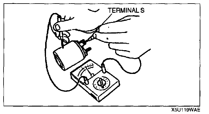 2. Inspect for continuity between terminal S and the body using an ohmmeter.