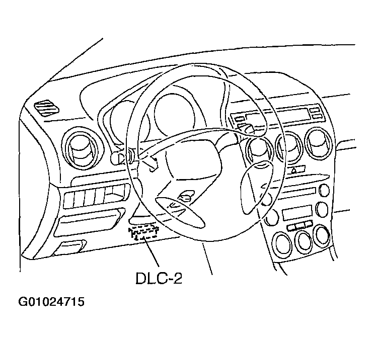 - Connect the WDS or equivalent to the vehicle DLC-2 16-pin connector located on the left side of the center console. See Figure.