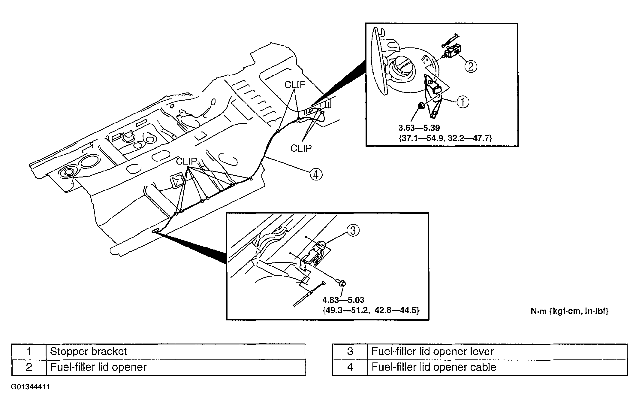 - When removing the fuel-filler lid opener cable, perform the following procedure: