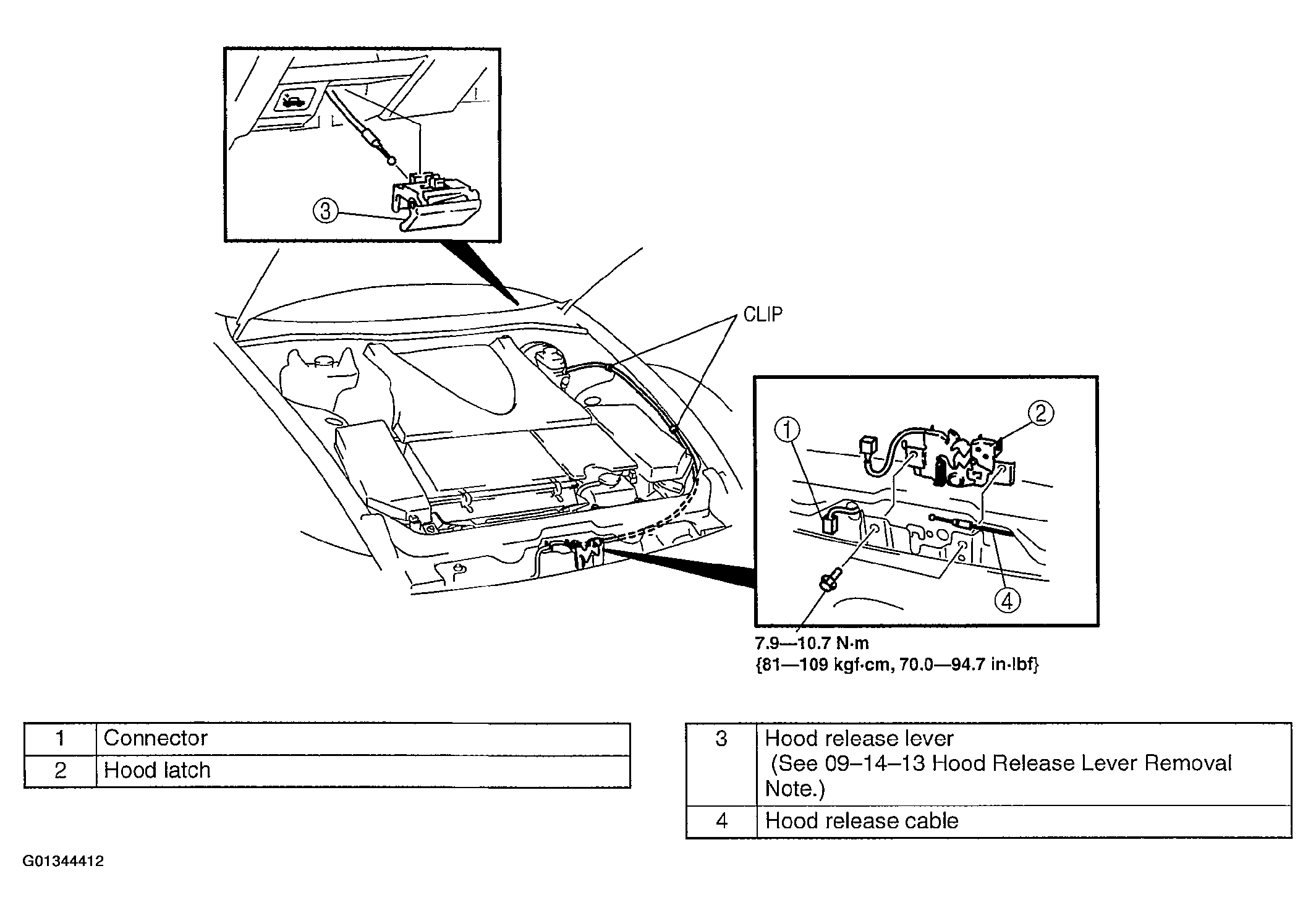 Home >> Mazda >> 2004 >> B4000 Base, Standard >> Repair and Diagnosis >> External Pages >> Different car >> Section 249 (Security System And Locks System) >> Hood Latch & Release Lever Removal/Installation >> Notes