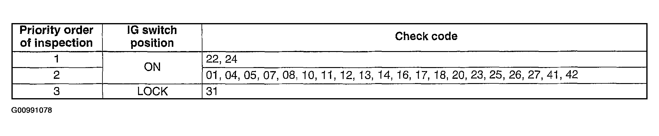- When inspecting more than two check codes, perform the inspection by following the priority order of inspection indicated in the chart. See Fig 1.