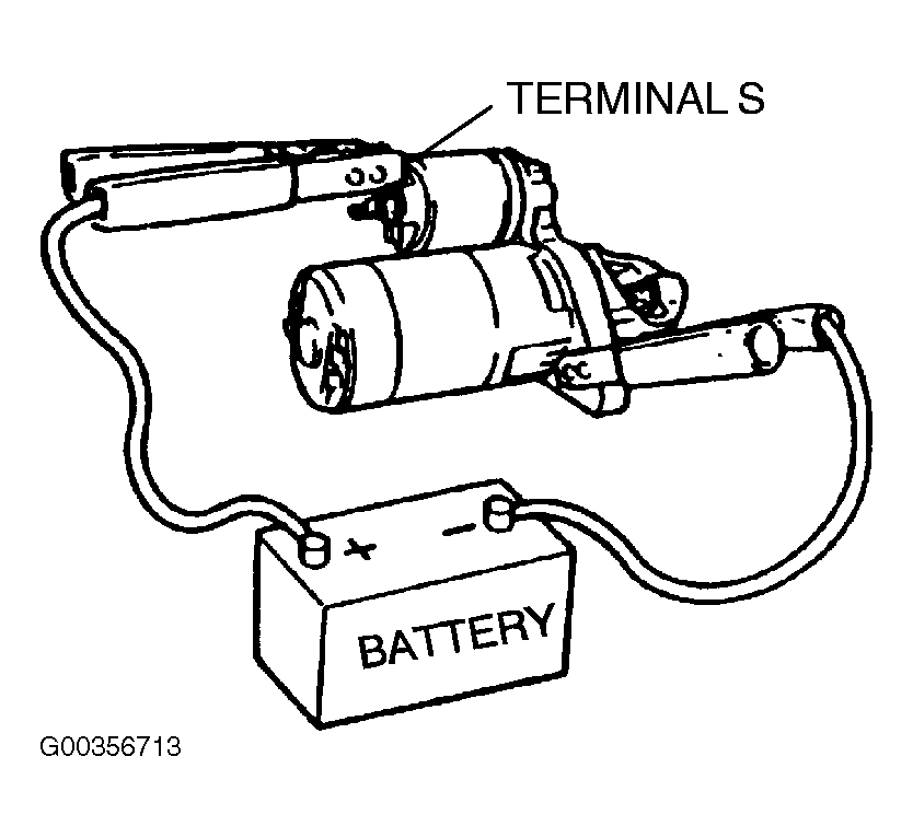Verify that the drive pinion is pulled out with battery positive voltage connected to terminal (S) and the started body grounded. See Fig 1 . If not pulled out, repair or replace the starter.