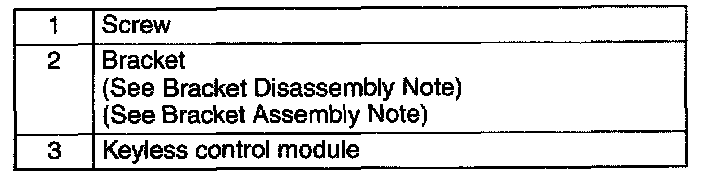 KEYLESS CONTROL MODULE DISASSEMBLY/ASSEMBLY1. Disassemble in the order indicated in the table.