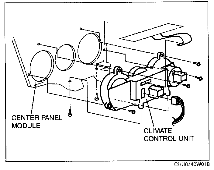 5. Remove the climate control unit from the center panel module.