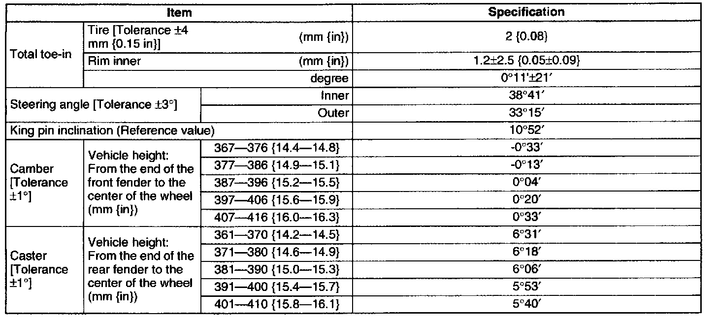 FRONT WHEEL ALIGNMENTSpecification (Unloaded Condition)