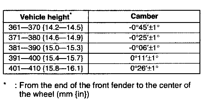 ^ Toe angle changes by approximately 5 mm (0.2 inch) per one rotation of the tie rod for one wheel.