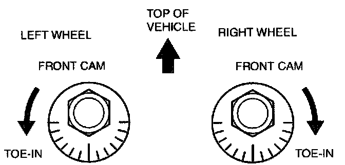 2. Rotate the adjusting cam bolt in either direction to adjust the toe-in.