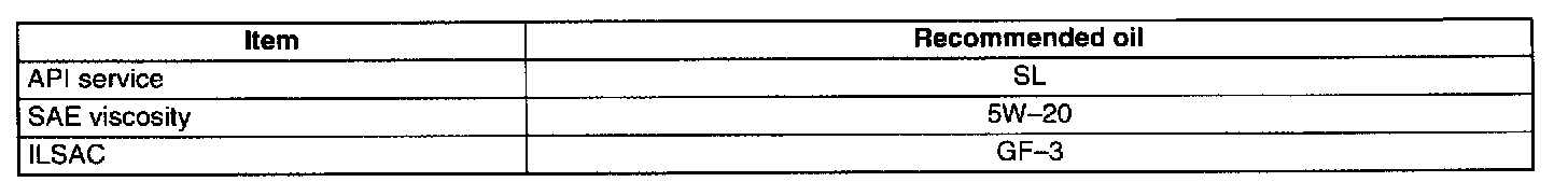 6. Refill the engine with the type and amount of engine oil specified in the table.