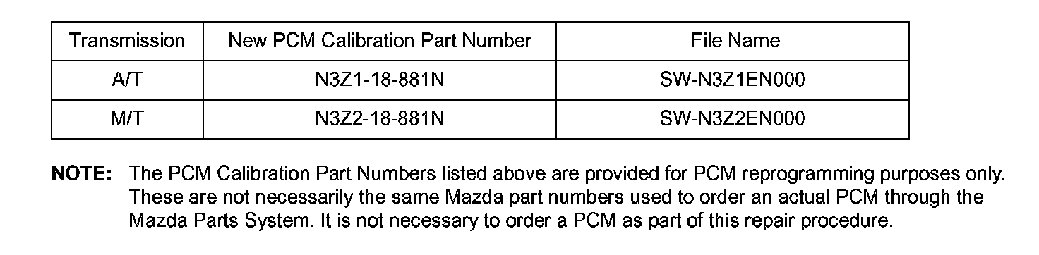 ^ Please be aware that PCM calibration part numbers and file names listed in any Service Bulletin may change due to future releases of WDS software, and additional revisions made to those calibrations for service related concerns.