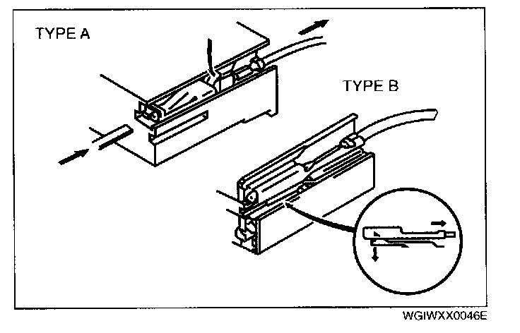 - Use the appropriate tools to remove a terminal as shown. When installing a terminal, be sure to insert it until it locks securely.