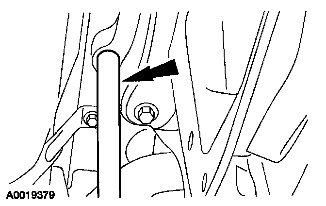 2. With a 19 mm (0.76 in) rod, align the rear subframe with the alignment holes.