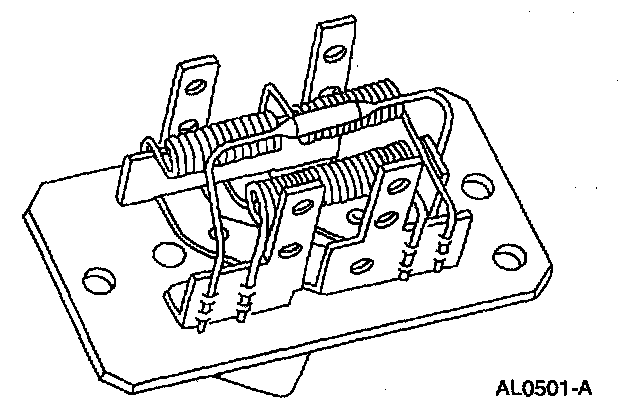 The four-speed operation of the blower motor is achieved through the blower motor switch resistor and contains a thermal limiter which is used as a temperature protecting fuse. The assembly is located on the passenger-side on the evaporator core housing behind the glove compartment.