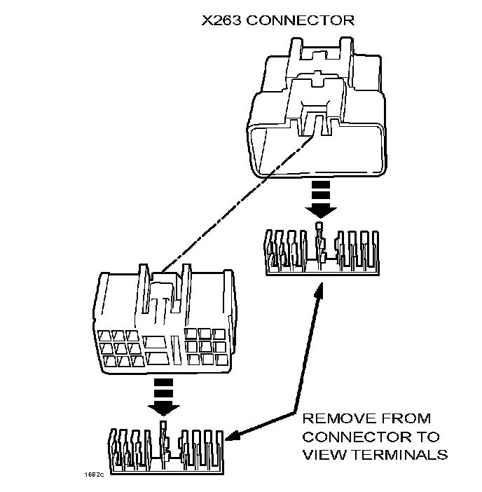 2. Disconnect the connector halves and thoroughly inspect the terminals. Clean any corrosion that may be present and replace any damaged terminals.