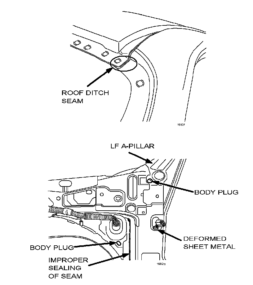 This may be the result of terminal corrosion in the X134 and/or X263 connectors, or the central junction box (CJB). Terminal corrosion results in either high resistance between the male and female terminals, or a short between two or more circuits due to bridging through any corrosion that may be present. Corrosion in X134 connector may be the result of improper positioning/sealing of X134 connector. Corrosion in the X263 connector or the CJB may be due to a water leak in the left hand A-Pillar area.