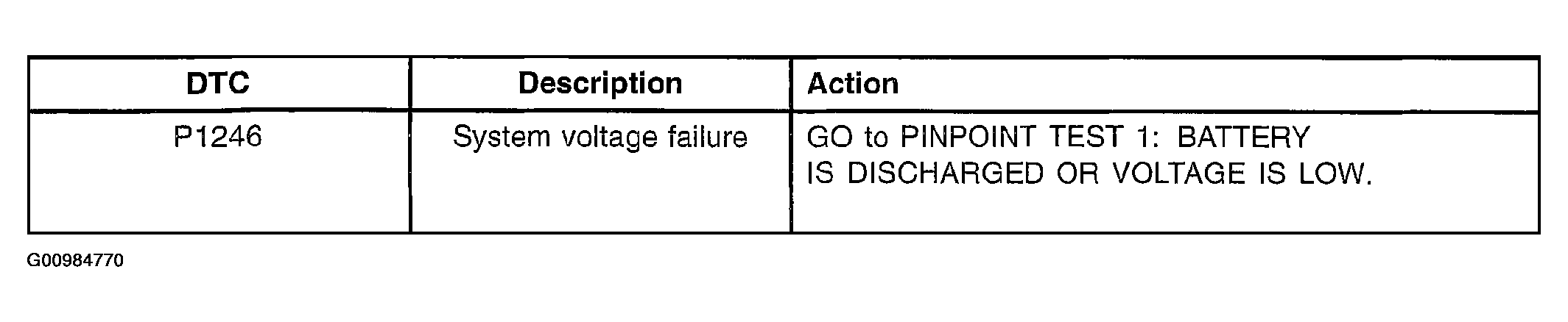 - DTC P1246 can be set by the loss of the communication lines, GEN COM Circuit (P/BR) and/or GEN MON Circuit (T/V). However, the generator warning indicator lamp will not illuminate since the generator is self-regulating and will function normally.