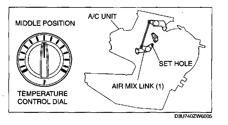 CAUTION: If the air mix wire is set without first fixing the air mix link position, it is possible that the air mix door cannot be switched normally.