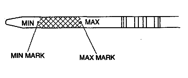 4. Remove the dipstick and verify that the oil level is between the MAX and MIN marks on the dipstick.