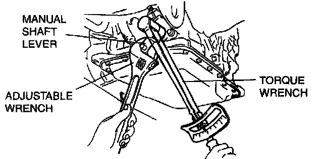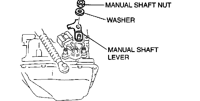 Caution: Do not use an impact wrench. Hold the manual shaft lever when removing the manual shaft nut, or the transaxle may be damaged.