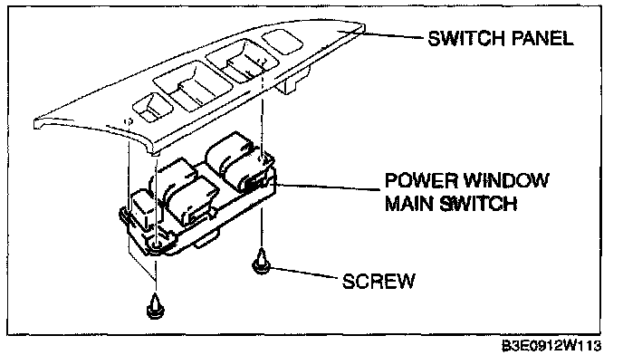 5. Remove the screws, then remove the power window main switch.