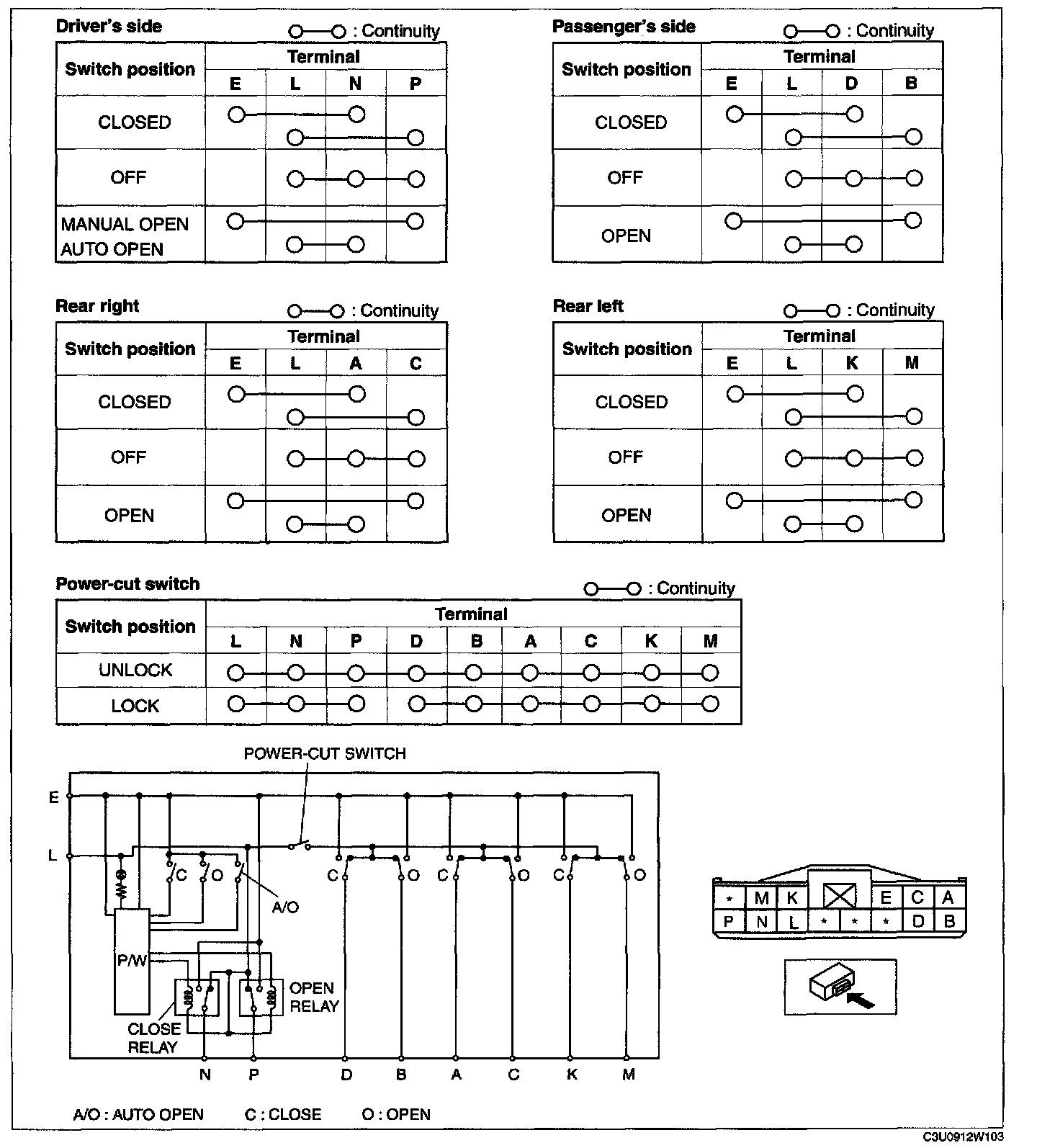 Home >> Mazda >> 2005 >> 3 L4-2.3L >> Repair and Diagnosis >> Windows and Glass >> Windows >> Power Window Switch >> Testing and Inspection >> Power Window Main Switch