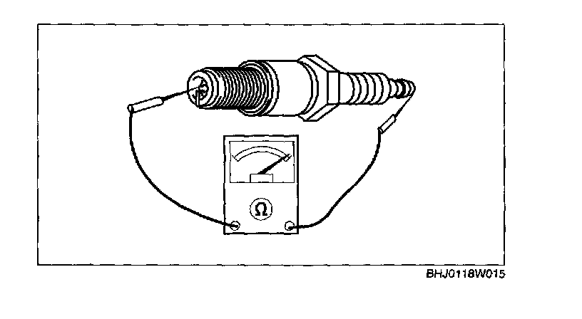 1. Measure the resistance of the spark plug using a tester as shown in the figure.