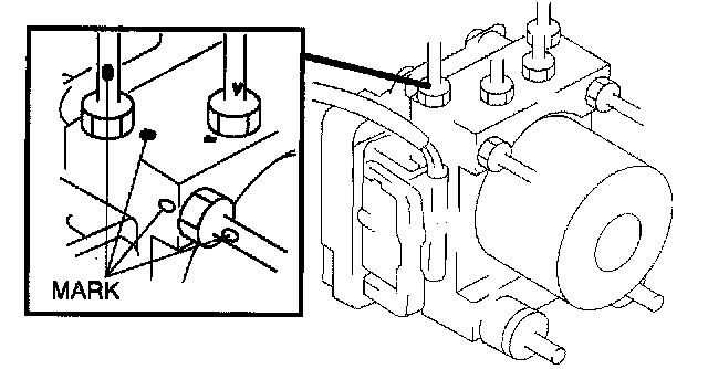 1. When installing the brake pipe, align the marks made before removal with the ABS/TCS HU/CM as shown in the figure.