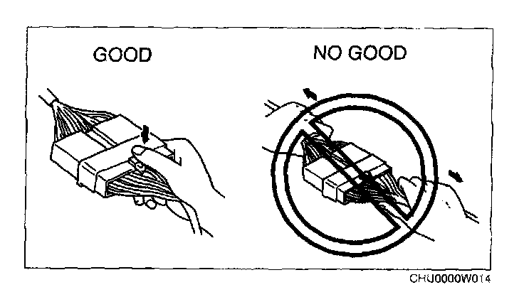 - When disconnecting connector, grasp the connectors, not the wires.