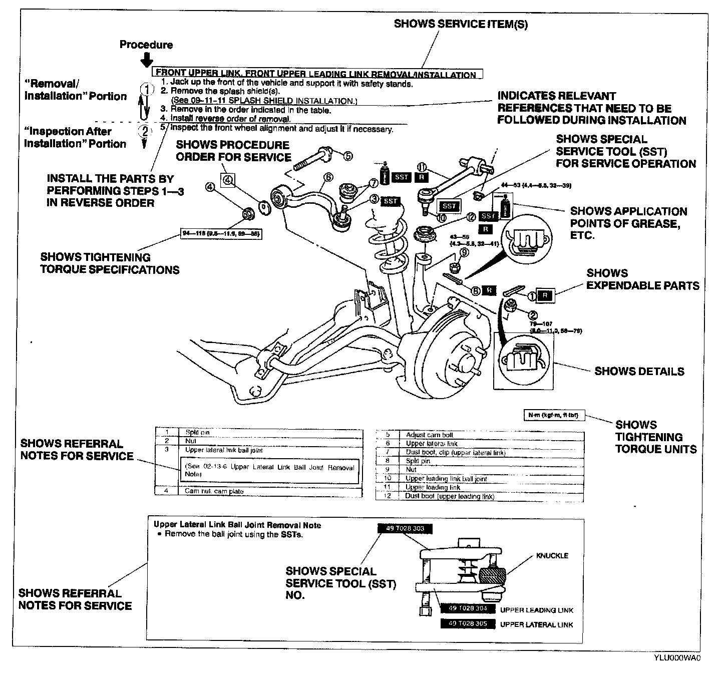 - Inspection and adjustment procedures are divided into steps. Important points regarding the location and contents of the procedures are explained in detail and shown in the illustrations.