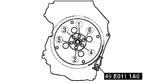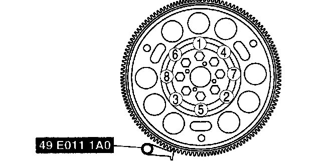 Tighten the new drive plate mounting bolts in two or three steps in the order shown.