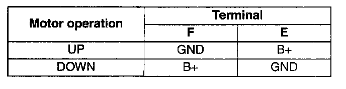 terminals and inspect the power window motor operation.
