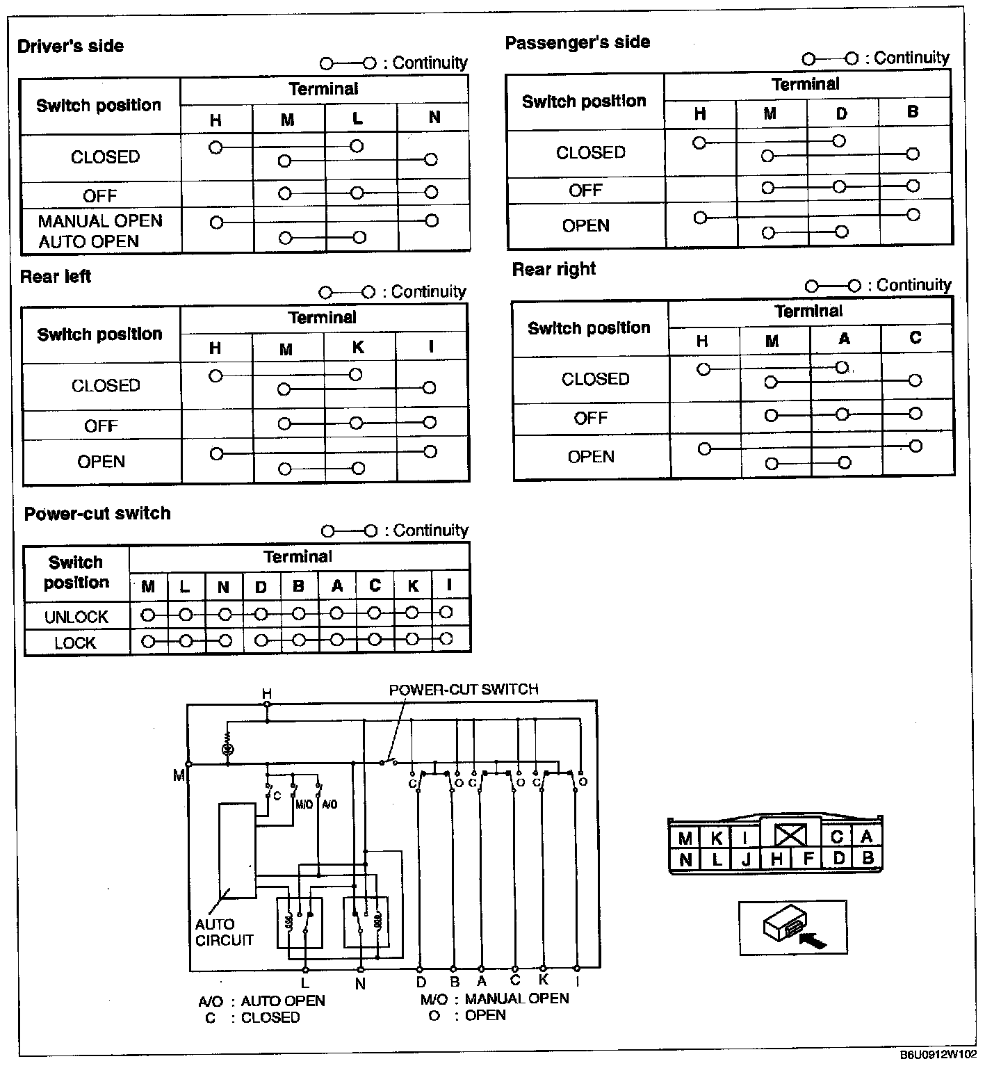 Home >> Mazda >> 2005 >> 6 L4-2.3L >> Repair and Diagnosis >> Windows and Glass >> Windows >> Power Window Switch >> Testing and Inspection >> Power Window Main Switch