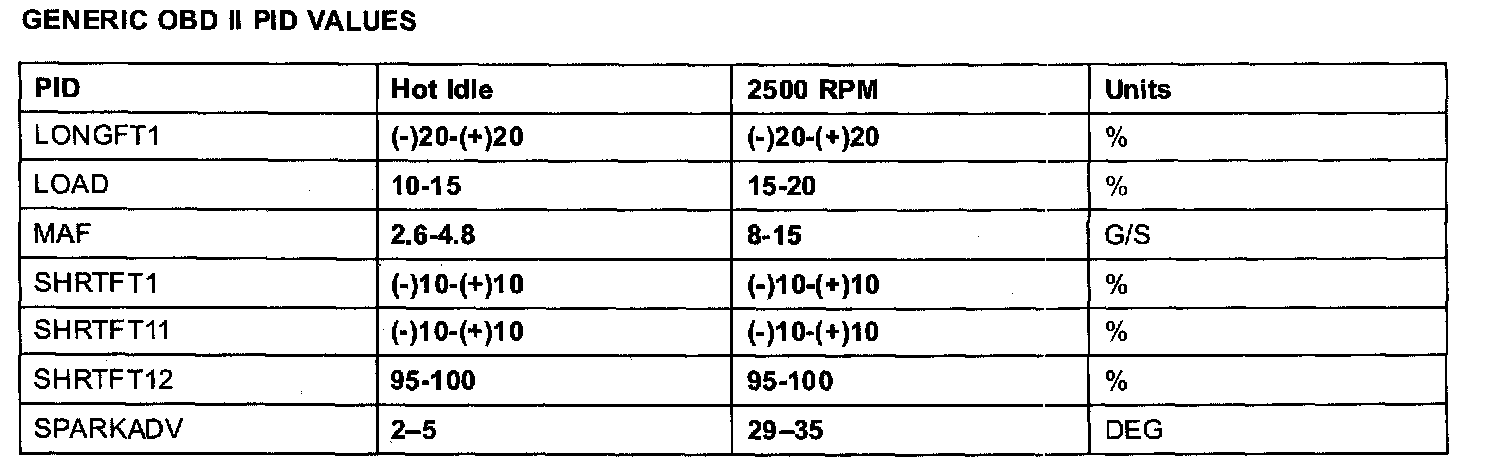 GENERIC OBD II PID VALUES