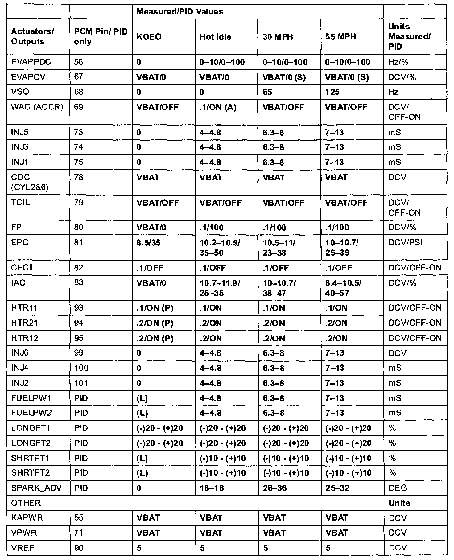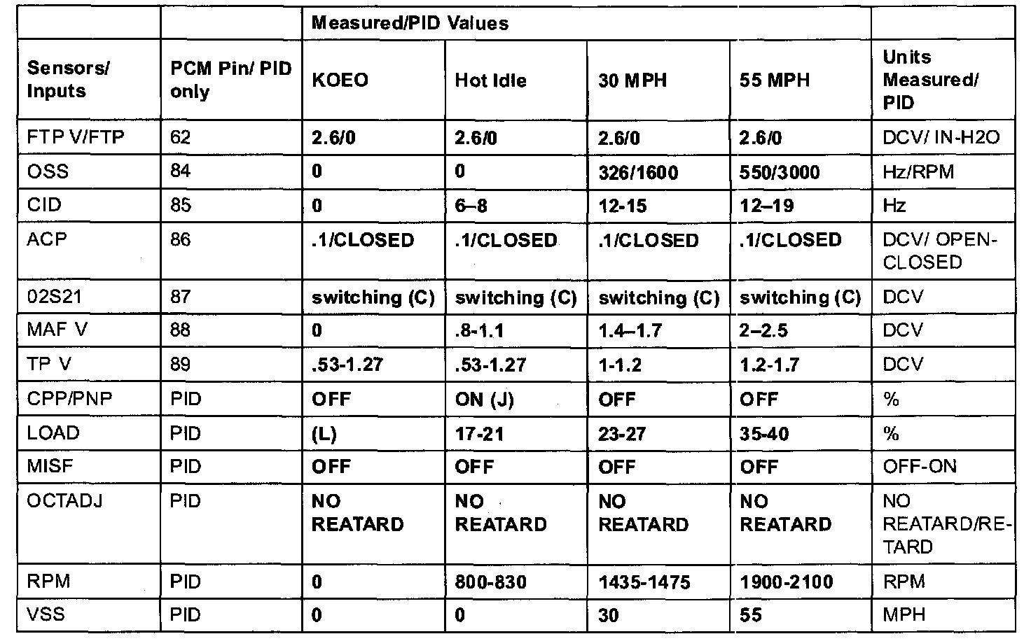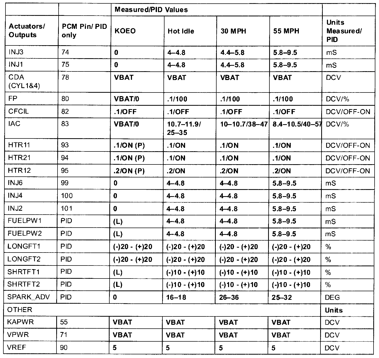 Home >> Mazda >> 2005 >> B3000 V6-3.0L OHV >> Repair and Diagnosis >> Powertrain Management >> Computers and Control Systems >> Engine Control Module >> Testing and Inspection >> Pinout Values and Diagnostic Parameters