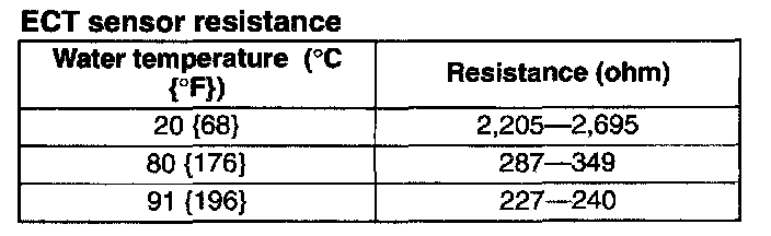 ENGINE COOLANT TEMPERATURE (ECT) SENSOR INSPECTIONNOTE: Before performing the following inspection, make sure to follow the troubleshooting flowchart. (See FOREWORD.) Flow of Diagnosis