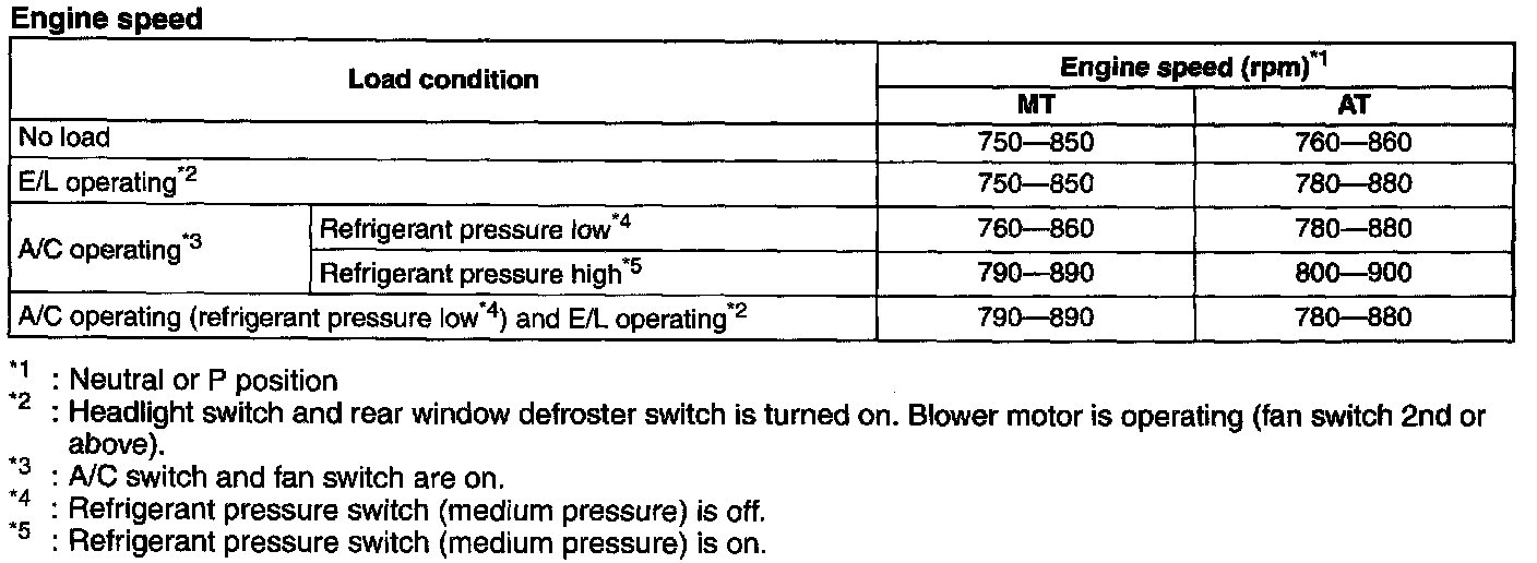 NOTE: Excludes temporary idle speed drop just after the loads are turned on.