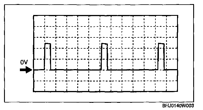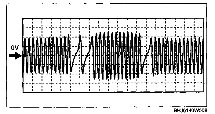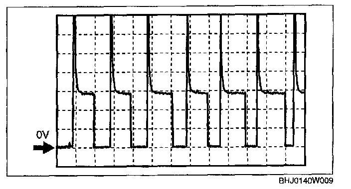 Inspection Using An Oscilloscope (Reference)NOTE: The duty ratio for the wave pattern can vary with the control conditions. Therefore determine comprehensively where the malfunction occurs among the input systems, output systems, and the PCM,
