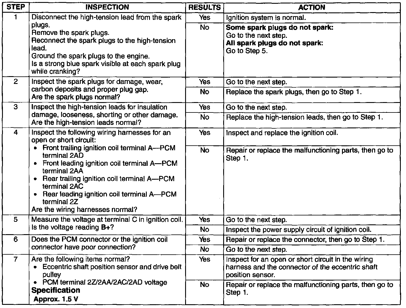 WARNING: High voltage in the ignition system can cause strong electrical shock which can result in serious injury. Avoid direct contact to the vehicle body during the following spark test.