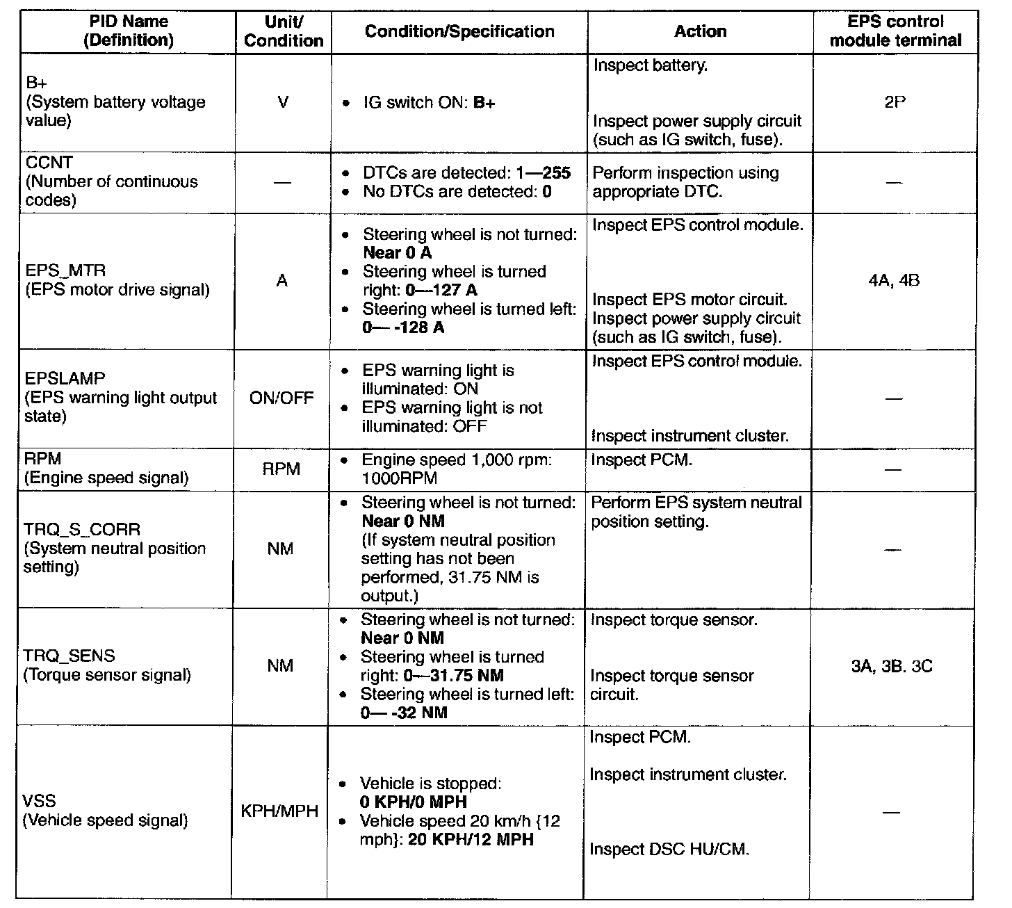 PID/DATA Monitor Table