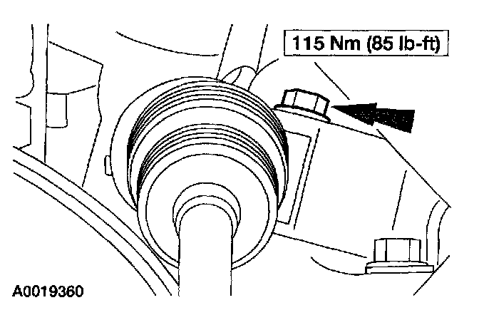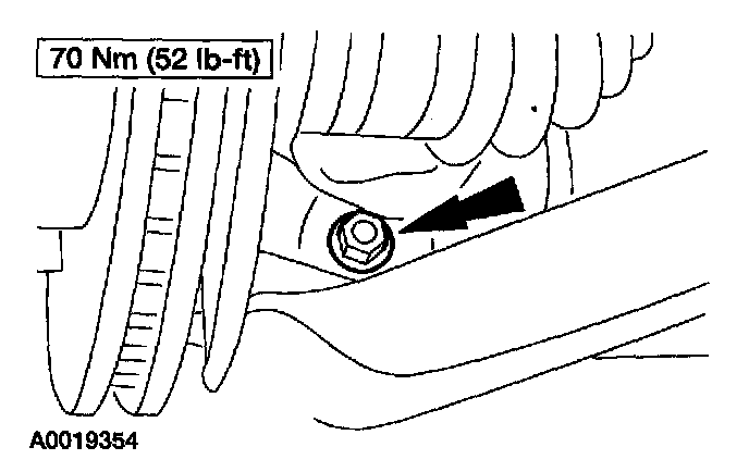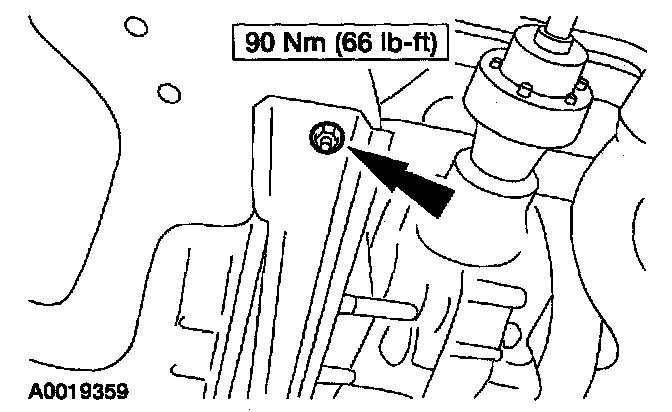 NOTE: Lower the rear of the engine to allow the subframe to clear the companion flange on the power take off (PTO) unit.