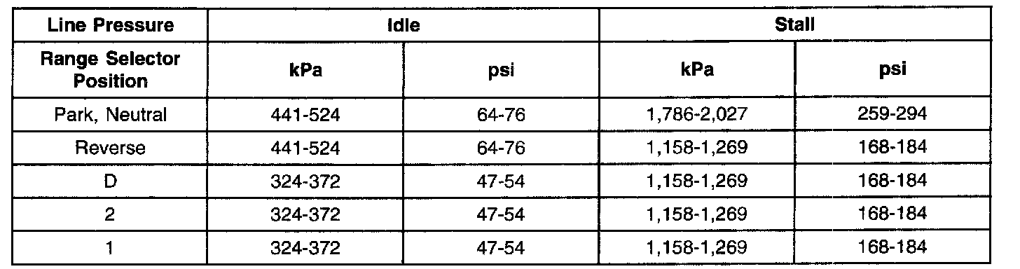 Line Pressure Chart